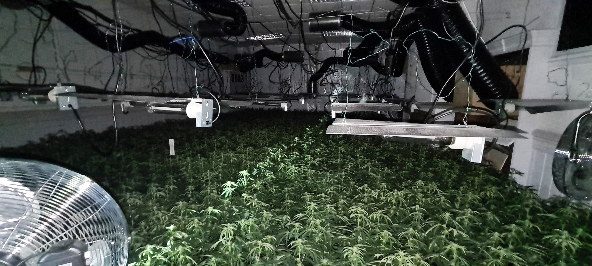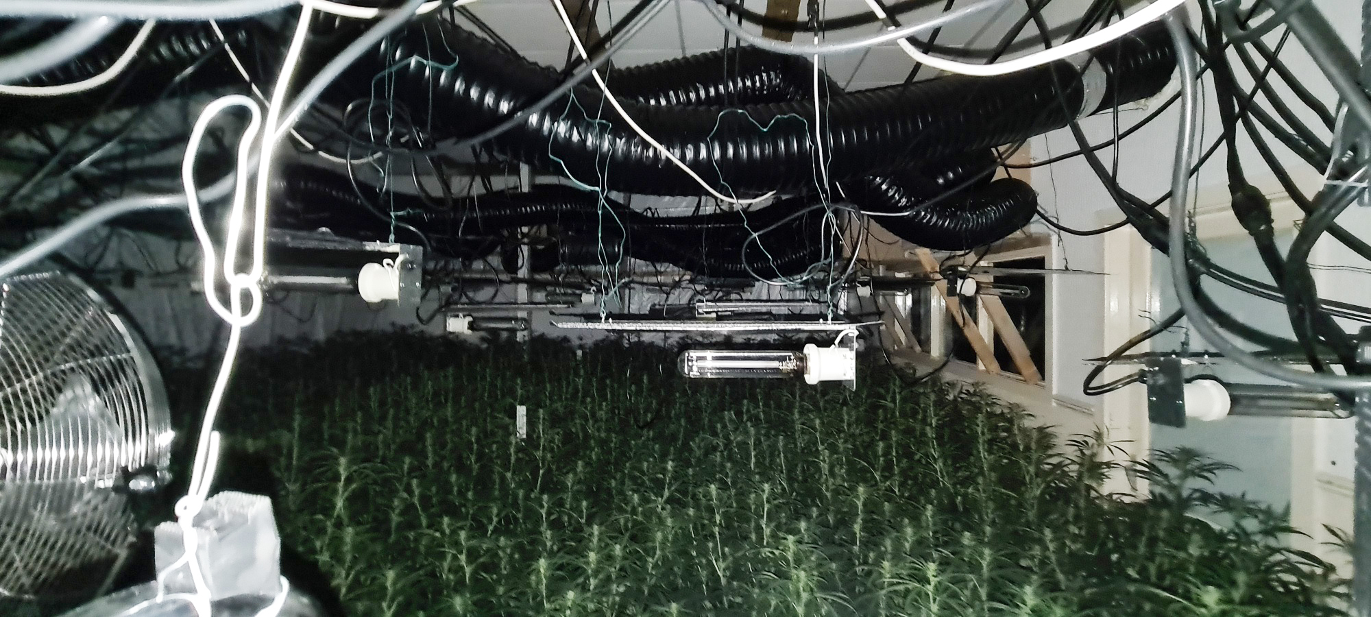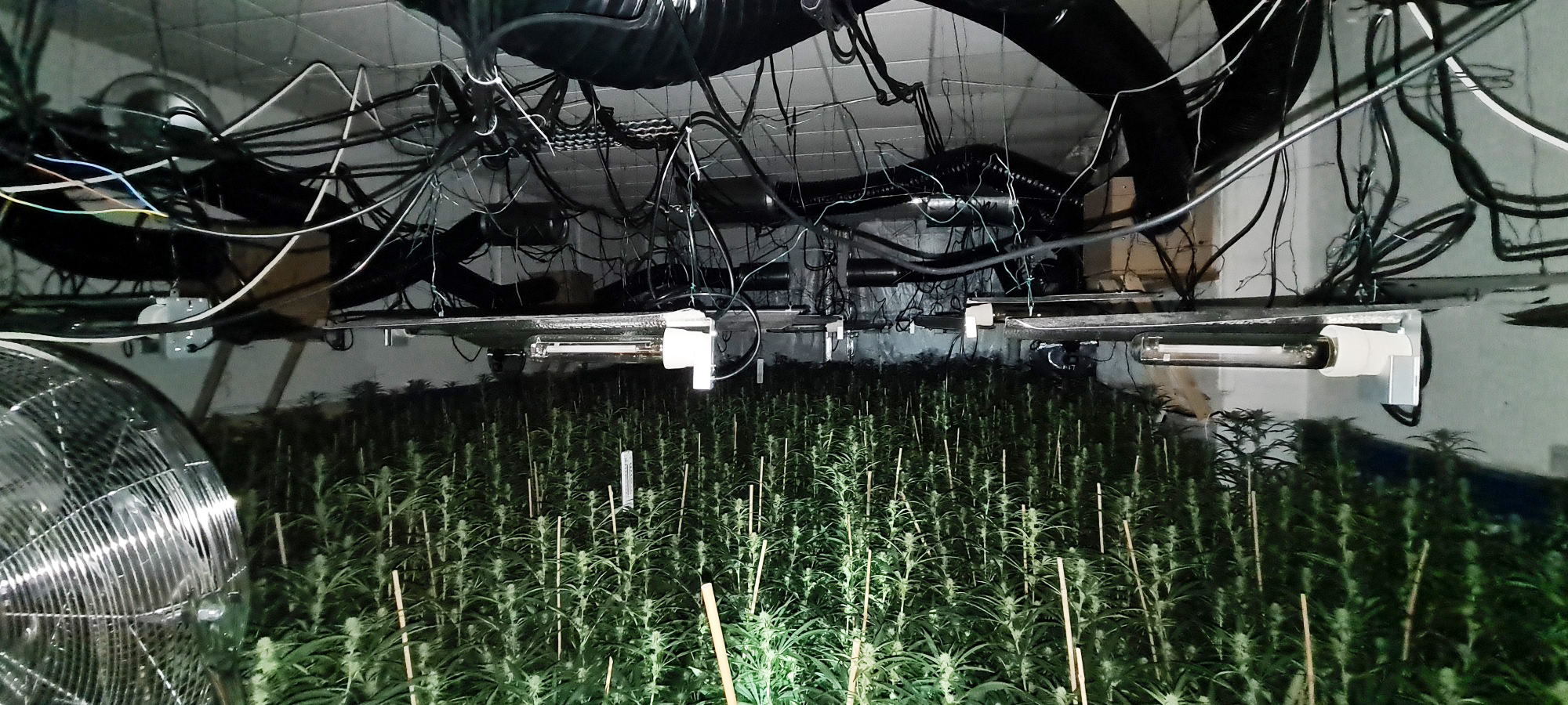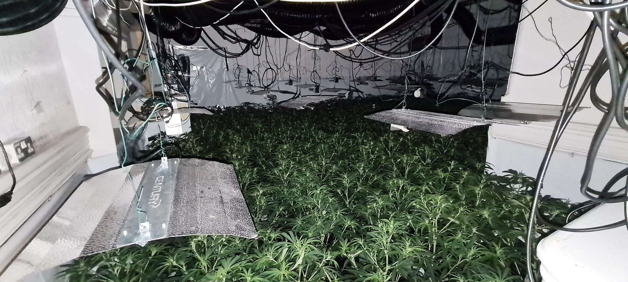 Officers forced entry to the building and uncovered a vast cannabis farm, covering multiple rooms and containing an estimated 3,000 plants, with an estimated street value of £1.2 million.