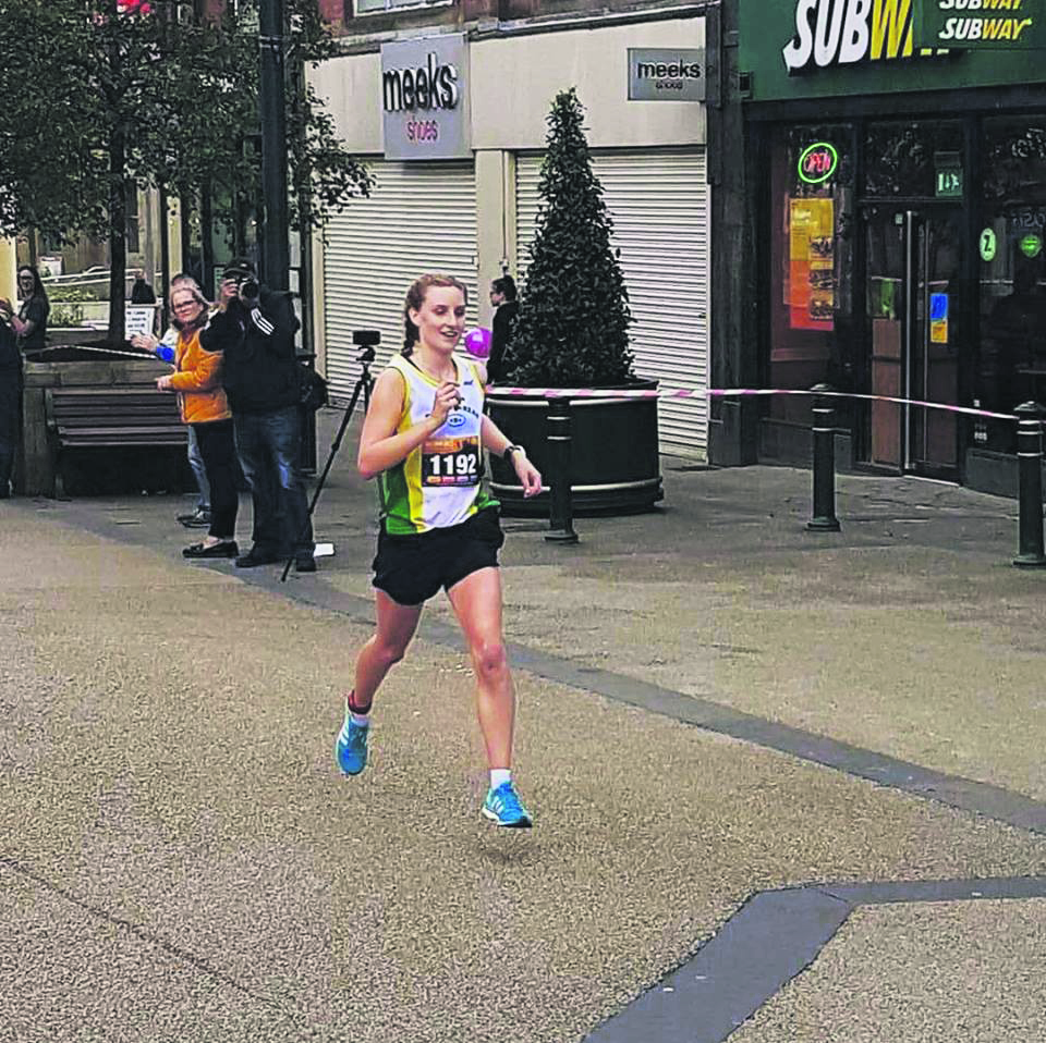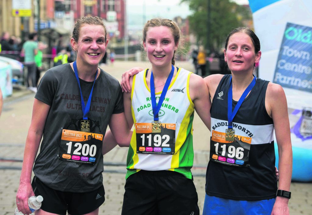 One of the toughest races of its kind in the UK with 1100 feet of climbing, Sophie held off the challenges of Cat Jessop and Saddleworth’s Gaynor Keane to cross the line in Oldham Town Centre in one hour, 32 minutes, 10 seconds.