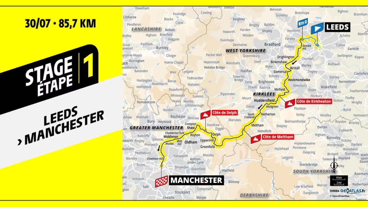 After starting in Leeds and taking in the ‘Cote de Meltham,’ riders will then pass through Shaw, Crompton and Royton as they make their way to Manchester city centre.